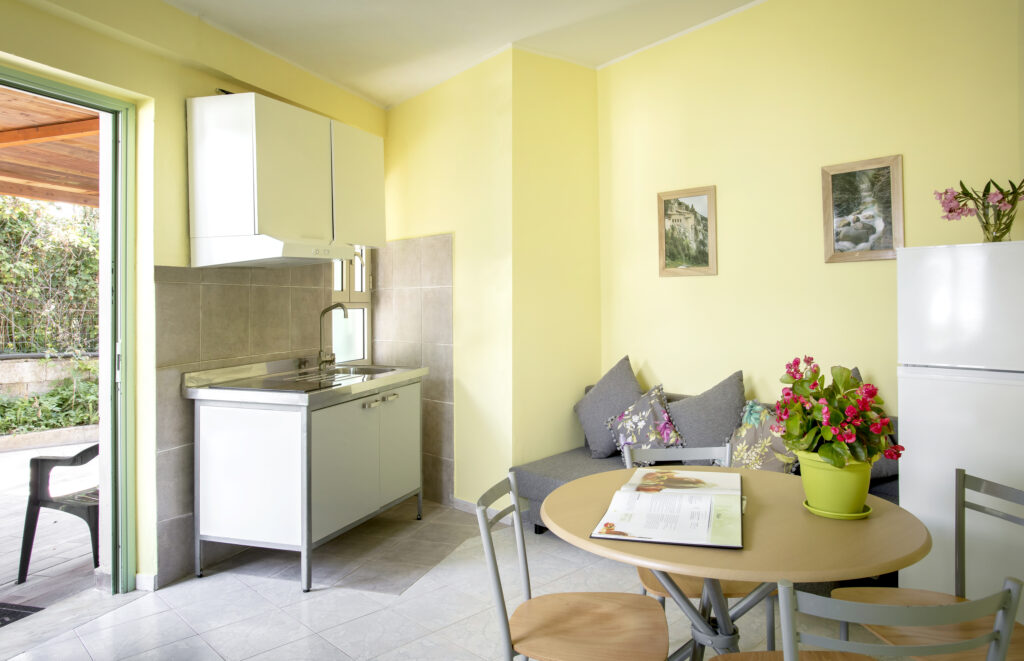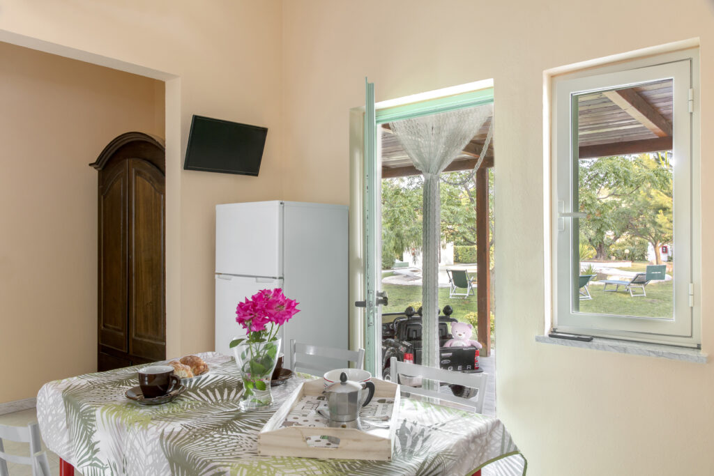 Apartments: all apartments are furnished with air conditioning, a cooking area, and fridge, a TV, and private services with a shower box. They also have an outer veranda equipped with a table and chairs. All the apartments have a private bathroom with shower and bidet;