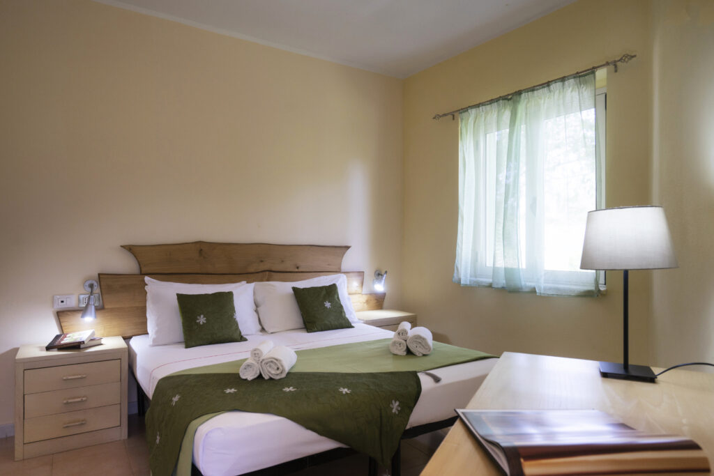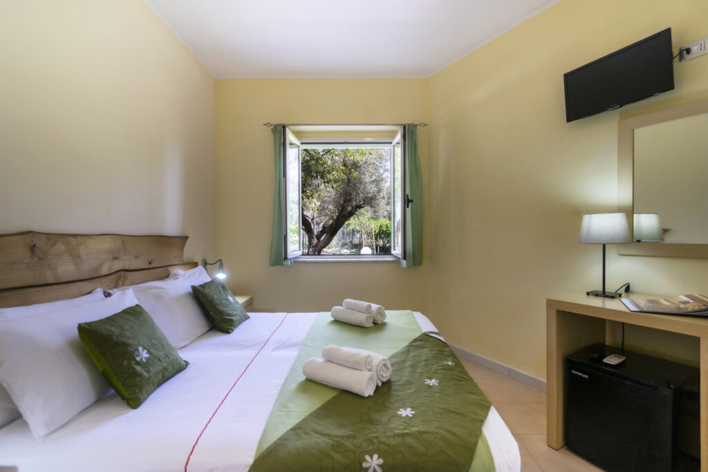 Hotel’s bedrooms: simple furniture made of local wood and design, our furnished rooms, are all equipped with air conditioning, fridge, TV, and hairdryer. Those on the ground floor are equipped with a veranda with a table and chairs. All the rooms have a private bathroom with a shower;
